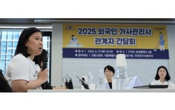 메이 안 외국인 가사관리사가 17일 서울 성동구 KT&G 상상플래닛에서 열린 2025 외국인 가사관리사 간담회에서 애로사항 및 건의사항을 말하고 있다. [뉴스1] 외국인 가사관리사 시범사업을 진행 중인 서울시가 고용노동부와 견해차를 드러냈다. 외국인 가사…
