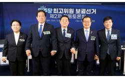 더불어민주당 최고위원 보궐선거에 출마한 문정복, 유동철, 강득구, 이건태, 이성윤 후보가 5일 오전 서울 여의도 더불어민주당 당사에서 열린 최고위원 보궐선거 제2차 합동토론회에 앞서 선전을 기원하며 기념촬영을 하고 있다. 임현동 기자 더불어민주당이 5일 …