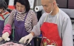 지난 12일 광주시 남구 방림동 성요셉 사랑의 식당에서 문빈정사 법공스님이 고기를 굽고 있다. 사진 오영순 의원 페이스북 캡처 저소득층을 위해 수녀원에서 운영하는 무료 급식소에 ‘고기 후원이 끊겼다’는 소식을 접한 사찰 주지 스님이 삼겹살을 챙겨가 구워주…