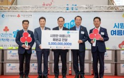사랑의열매는 취약계층의 시원한 여름나기를 위한 50억 원 규모의 배분금을 전국 17개 시·도지회에 전달했다. (왼쪽부터 보건복지부 은성호 인구·사회서비스정책실장, 사랑의열매 김병준 회장, 인천사회복지관협회 류호인 회장, 인천광역시 유정복 시장, 인천 사랑의열매 조상범 …