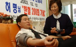허명씨가 울산에서 200번째 헌혈을 하는 모습. 사진 허명씨 "매혈(賣血)하던 사람이 피를 너무 많이 뽑아서 죽었다는 뉴스를 접하고 충격을 받았죠. 여건이 된다면 사람 목숨을 구하는 게 올바른 인생이다 싶었습니다." 헌혈 개념이 흐릿하던 1976년, 그렇게 …
