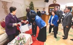 한학자 세계평화통일가정연합(통일교) 총재가 지난 1월 11일 미국 라스베이거스 한화궁(전 국제평화교육원)에서 신도들에게 선물을 건네고 있다. 사진 통일교 매거진 트루피스 무속인 ‘건진법사’ 전성배(64)씨를 수사 중인 검찰이 한학자 통일교 총재의 미국 라스베이거스…