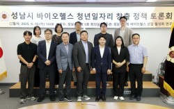 가천대학교 GUIP 사업단과 성남시의회 관계자들이 지난 10일 성남시의회에서 열린 ‘바이오헬스 산업과 청년 일자리 연계’ 간담회에서 단체 기념촬영을 하고 있다. 가천대학교 GUIP(경기도 대학혁신플랫폼) 사업단(단장 서원식)은 지난 10일 성남시의회 회의…