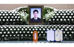 지난 11일 인천 동구의 한 장례식장에 갯벌 고립 노인에 구명조끼 벗어주고 숨진 해경 고(故) 이재석 경장 빈소가 마련되어 있다. 이 경장은 이날 오전 3시 30분께 인천 옹진군 영흥도 갯벌에서 70대 A씨가 고립됐다는 신고를 받고 현장에 투입돼 구조 작업 중 실종됐…