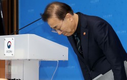 김윤덕 국토교통부 장관이 지난 9일 세종시 정부세종청사에서 12.29 여객기참사 이후 무안공항 항공기 잔해물 추가 조사 과정에서 희생자들의 유해와 유류품이 추가로 발견되면서 유가족들에게 사과 브리핑을 마친 고개 숙여 인사하고 있다. 뉴스1 12·29 여객기 참사를…
