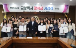 이승환 총장과 수상자들이 단체 기념촬영을 하고 있다. 구미대학교(총장 이승환)는 ‘2025 독서인증 공모전’ 시상식을 개최했다. 9일 3층 대회의실에서 진행된 시상식에는 이승환 총장을 비롯한 수상 학생과 학과 지도교수 등이 참석했다. ‘독서인증…