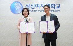 성신여대 뷰티산업학과(학과장 한지수, 왼쪽)와 ㈜영우(대표이사 홍석우, 오른쪽)가 업무협약 체결 후 기념 촬영을 하고 있다 성신여자대학교(총장 이성근)는 10일, 서울시 성북구에서 소재한 수정캠퍼스 행정관 회의실에서 생활산업대학 뷰티산업학과와 ㈜영우(대표…