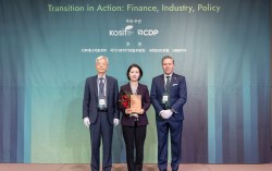지난 10일 열린 2025 CDP 기후변화 대응·물 경영 우수기업 시상식에서 성유진 코스맥스 지속가능경영실장(가운데)이 섹터우수상을 수상한 뒤 기념촬영을 하고 있다. 글로벌 화장품 연구·개발·생산(ODM) 기업 코스맥스는 지난 10일 탄소정보공개프로젝트(…
