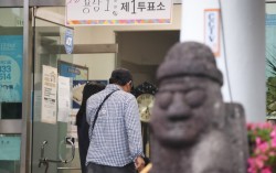 제21대 대통령 선거일인 3일 제주 용담1동 노인복지회관에 마련된 용담1동 제1투표소로 유권자가 들어서고 있다. 뉴스1 제주에서 이중 투표를 시도한 2명이 적발돼 경찰에 고발됐다. 제주도선거관리위원회는 사전투표에 참여한 뒤 본투표 당일 재차 투표하려…