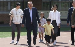 윤석열 전 대통령과 김건희 여사가 제21대 대통령 선거일인 3일 오전 서울 서초구 원명초등학교에 마련된 서초4동 제3투표소에서 투표를 하기 위해 동네 주민 아이들과 함께 이동하고 있다. 장진영 기자 윤석열 전 대통령 부부가 제21대 대통령 선거 본투표가 치러지는 …