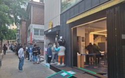 대선 투표일인 3일 오전 6시즈음 서울 강동구 강풀만화거리에 위치한 강동구청 직영 카페 '승룡이네'에 주민들이 투표를 하기 위해 길게 줄을 서 있다. 이날 '승룡이네'는 일일 투표소로 변신했다. 김성진 기자. 대선 투표일 당일인 3일 오전 6시부터 서울…