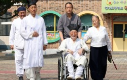 제21대 대통령선거일인 3일 충남 논산시 양지서당의 유복엽 훈장 어른과 가족들이 소중한 한표 행사를 위해 연산초등학교에 마련된 투표소로 향하고 있다.뉴시스 “주변에서 다들 사전 투표했다고 해서 ‘나만 빠질 순 없다’는 생각에 일찍 투표하러 왔습니다.” …
