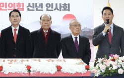 오세훈 서울시장이 1일 국민의힘 신년인사회에 참석해 발언하고 있다. 왼쪽부터 장동혁 당대표, 황우여·장경우 상임고문, 오 시장. 임현동 기자 신년 벽두부터 국민의힘에서 쇄신 요구가 분출하고 있다. 오세훈 서울시장은 1일 장동혁 국민의힘 대표를 향해 “윤석…