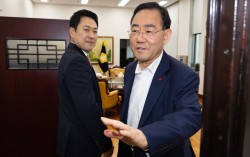 대구시장 경선에서 컷오프(공천배제)된 주호영 의원(오른쪽)과 장동혁 국민의힘 대표가 지난달 31일 서울 여의도 국회에서 면담을 위해 부의장실로 들어서고 있다. 뉴스1 국민의힘 대구시장 후보 경선에서 공천 배제(컷오프)된 주호영 의원은 9일 “공천 시스템을…