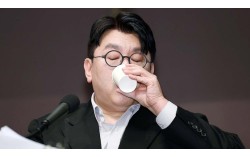 방시혁 하이브 의장이 지난 2023년 15일 오전 서울 중구 프레스센터에서 관훈클럽 주최로 열린 관훈포럼에서 물을 마시고 있다. 연합뉴스 서울남부지검 금융·증권범죄합동수사부(부장 안창주)가 최근 용산에 위치한 연예기획사 하이브 본사 등을 압수수색한 것을 …