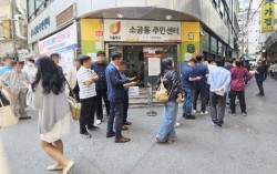제21대 대통령선거 사전투표가 시작된 29일 낮 서울 중구 소공동 사전투표소 앞에 점심시간에 짬을 내 들른 직장인 등 유권자들이 길게 늘어서 있다. 신혜연 기자 21대 대통령 선거 사전투표 첫날인 29일 일부 투표소의 대기줄이 500m가 넘을 정도로 투표 열기가 …