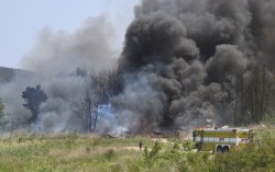 29일 오후 1시 35분쯤 경북 포항 남구 동해면 야산에 해군 해상 초계기(P-3C)가 추락해 출동한 소방관이 진화작업을 벌이고 있다. 뉴스1 29일 오후 1시 50분쯤 경북 포항시 남구 동해면 신정리 포항공항 인근 야산에 해군이 운용하는 해상초계기 P-…