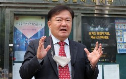 전광훈 사랑제일교회 목사가 지난달 11일 오후 서울북부지방법원에서 진행된 첫 번째 공판에 출석하기 전 인터뷰를 하고 있다. 뉴스1 지난 대선을 앞두고 교회 예배시간에 특정후보를 지지하는 발언을 한 혐의로 기소된 전광훈 사랑제일교회 목사가 1심에 이어 2심…