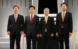 이재명 더불어민주당(왼쪽부터), 김문수 국민의힘, 권영국 민주노동당, 이준석 개혁신당 대통령 후보가 23일 서울 영등포구 KBS본관 스튜디오에서 중앙선거방송토론위원회 주관 제21대 대통령선거 2차 후보자 토론회 시작에 앞서 기념 촬영을 하고 있다. 뉴스1 …