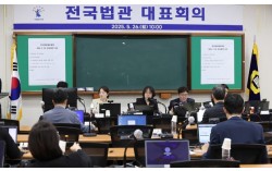 26일 경기도 고양시 사법연수원에서 열린 전국법관대표회의에서 김예영 의장(가운데)이 발언하고 있다. 법관 대표 126명 중 88명이 온·오프라인으로 참석한 이날 회의는 표결 없이 종료됐다. 장진영 기자 대법원의 이재명 더불어민주당 대선후보 공직선거법 사건…