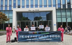 지난 22일 핫핑크돌핀스 등 시민사회단체 8곳이 서울 송파구 쿠팡 본사 앞에서 '고래고기 온라인 판매'와 관련해 공동 기자회견을 진행했다. 이수민 기자 세계 최대 자연보전기구인 세계자연보전연맹(IUCN)이 보호종으로 지정한 밍크고래가 국내 온라인 유통 플랫폼에서 …