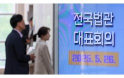 26일 경기 고양시 일산동구 사법연수원에서 열린 전국법관대표회의에서 참석자들이 회의장으로 참석하고 있다. 뉴스1 이재명 더불어민주당 대선 후보의 ‘공직선거법 위반’ 사건 상고심 이후 제기된 논란에 대해 논의하기 위해 소집된 전국법관대표회의가 전국법관대표회…