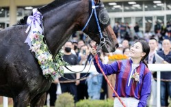 김혜선 기수(36)가 지난해 4월 출전한 YTN배 대상경주에서 우승 후 글로벌히트를 보며 웃고 있다. 사진 마사회 “여성도 기수로 성공할 수 있다는 선례를 남겨 뿌듯합니다.” 지난 25일 렛츠런파크 부산경남에서 열린 제20회 부산광역시장배 대상경주…