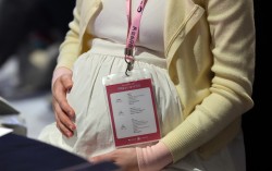 지난 10월 서울에서 열린 '제20회 임산부의 날 기념행사'에서 임산부가 배를 만지고 있다. 뉴스1 임산부의 절반 가까이는 임신을 이유로 배려받아본 경험이 없는 것으로 나타났다. 이들이 겪은 부정적 경험 1위로는 길거리 흡연 등이 꼽혔다. 인구보건복…