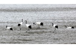 2024년 1월 인천 강화군 동검도 인근 갯벌에서 두루미 무리가 먹이활동을 하고 있다. 천연기념물인 두루미는 매년 겨울 강화 갯벌을 찾아와 겨울을 보낸 뒤 번식지인 시베리아로 이동한다.연합뉴스 인천 시민단체들이 인천 갯벌의 유네스코 세계자연유산 등재를 직…