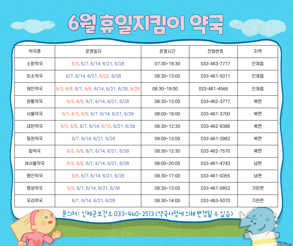 [인제군] 휴일 지킴이 약국(6월)