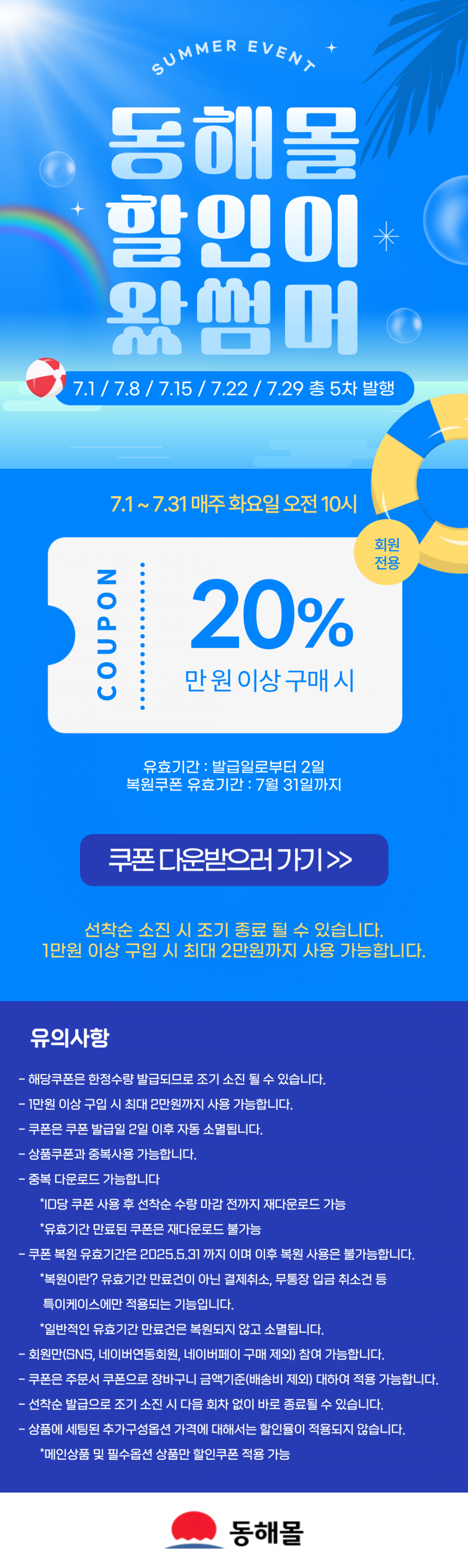 동해몰에서 여름맞이 할인행사를 계획 중이오니, 많이 활용하여 주시기 바랍니다.