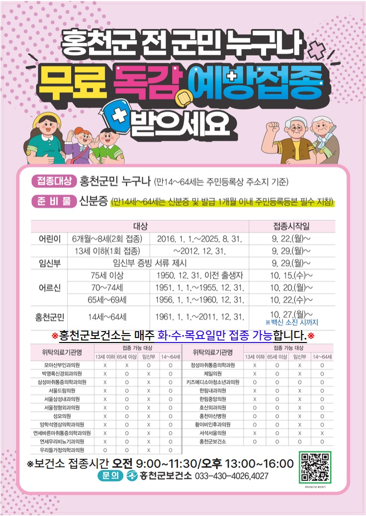 [홍천군] [2025-2026절기] 인플루엔자(독감) 및 코로나19 예방접종 안내