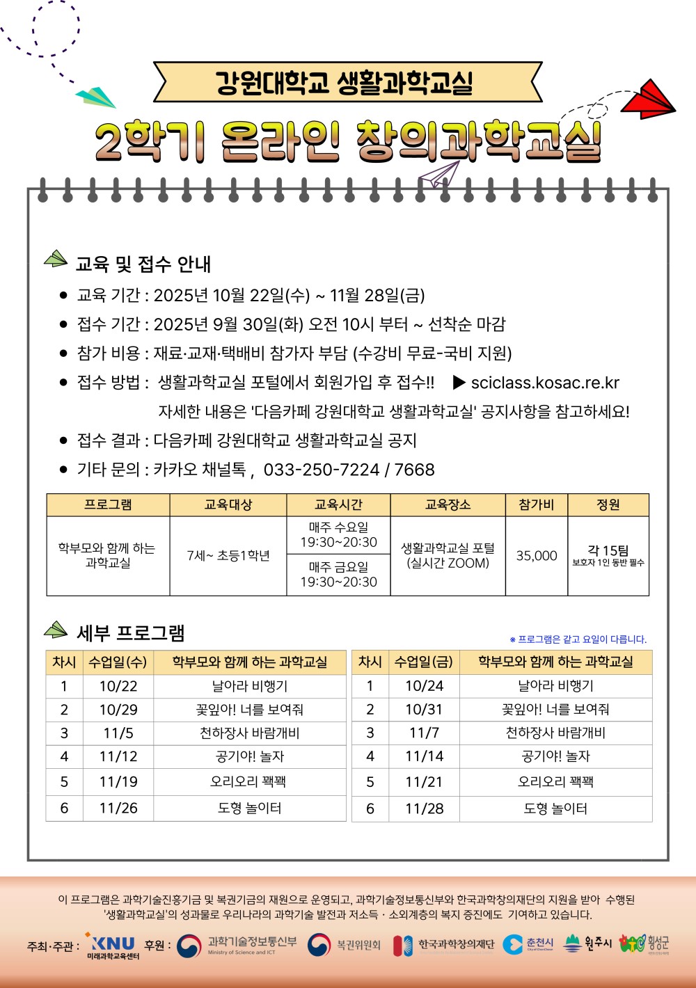 [횡성군] [대표] 2025년 강원대학교 생활과학교실 2학기 프로그램 홍보(온라인)