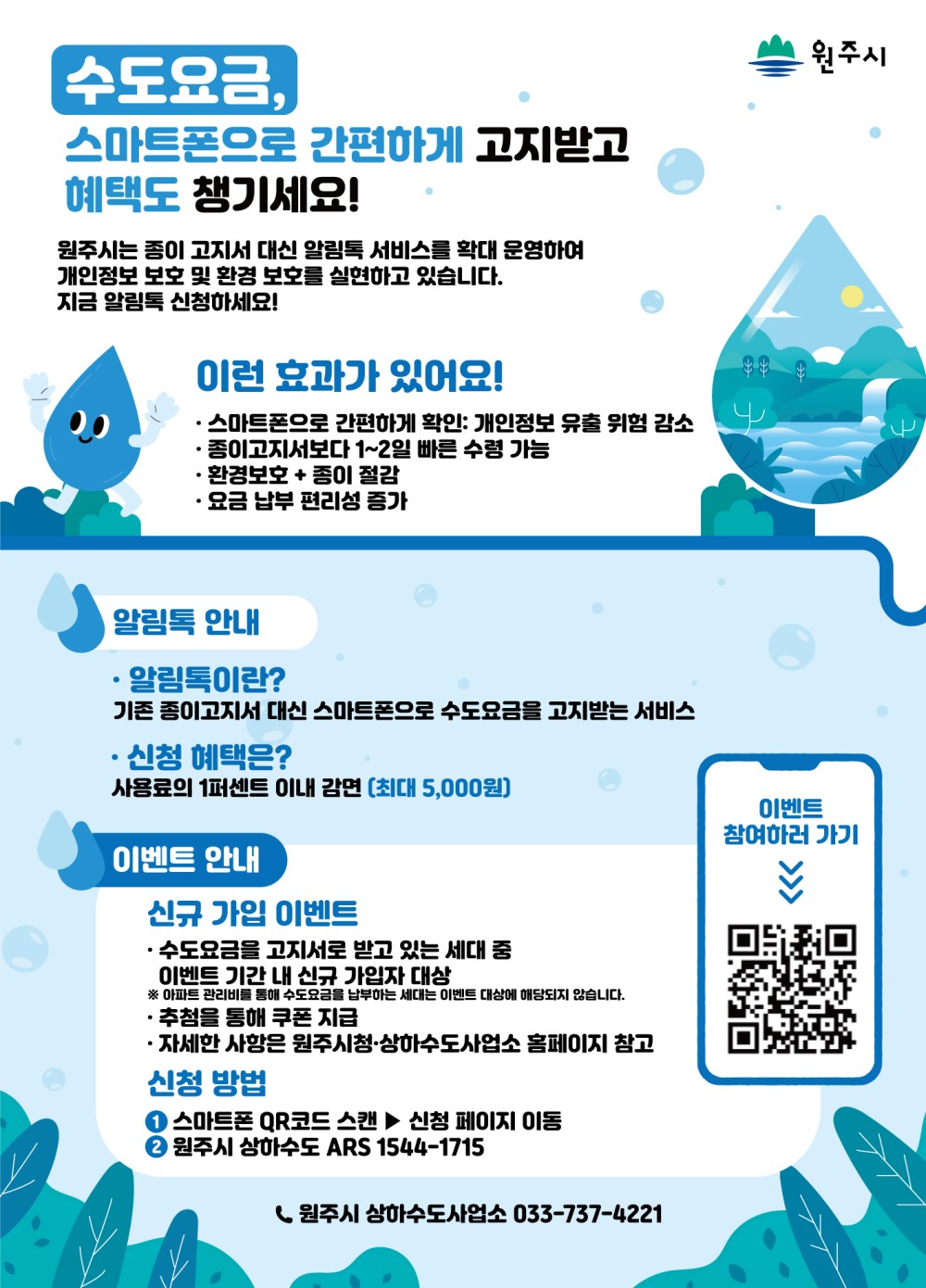 [원주시] 수도요금 알림톡 신규 가입 이벤트 알림(2025.10.1.~12.7.)