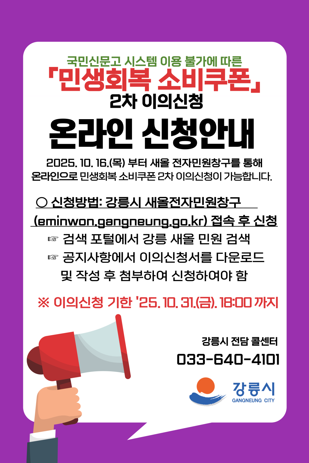 [강릉시] 민생회복 소비쿠폰 2차 이의신청 온라인 신청 안내