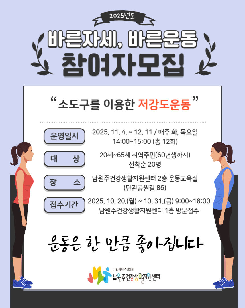 [원주시] 남원주건강생활지원센터 바른자세, 바른운동 프로그램 모집 안내