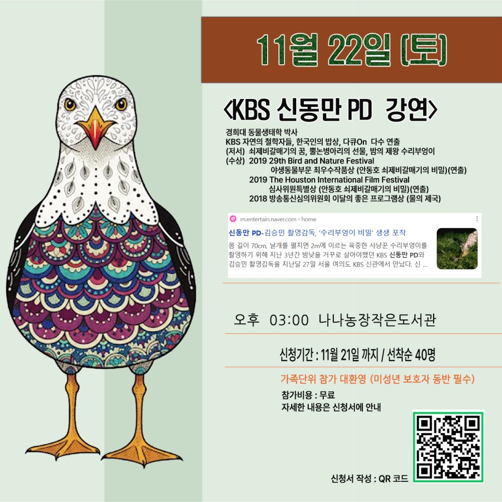 [고성군] 제4회 고성 새로보기 탐조 마을학교 프로그램별 신청 링크 또는 QR코드를 통해 참여 신청해 주세요!