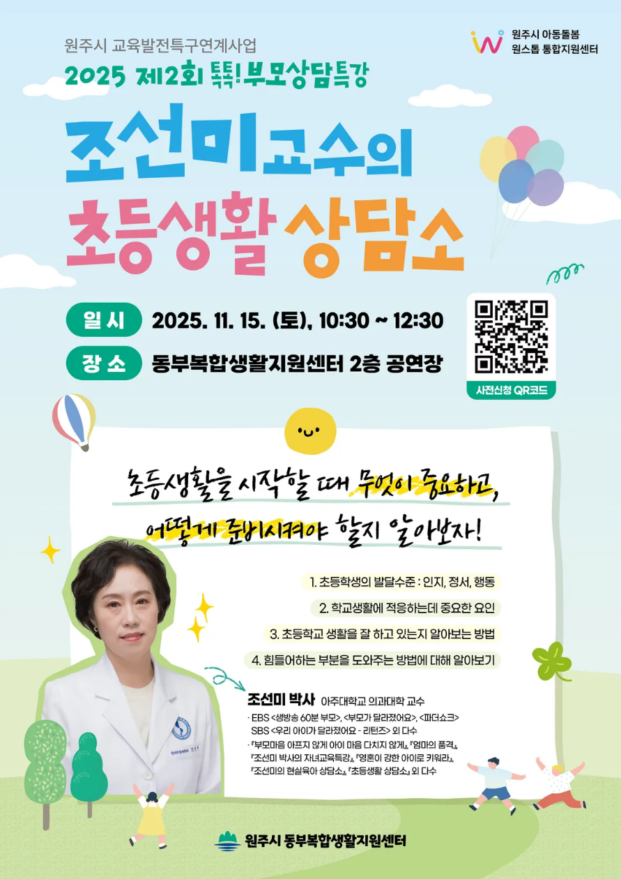 [원주시] 11/15 '조선미 교수의 초등생활 상담소' 특강 참여자 모집