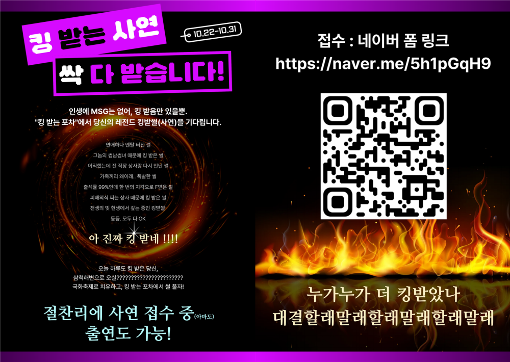 ○ 접수대상: 킹(화)받는 사연있는 누구나