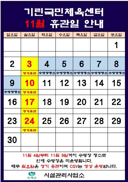 [인제군] 기린국민체육센터 11월 휴관일 안내 Home시군별소식60703 소셜우주 소셜우주님의 홈 전체게시물 아이디로 검색 소셜우주님의 홈 전체게시물 아이디로 검색 5시간 2분전 127 0 0 LV.1 69% 관련링크 : https://inje.go.kr/portal/adm/notice?articleSeq=242858 3회 연결 신고 목록 게시글 신고 안내 아래 내용중 해당하는 내용이 있을경우 아래 게시글신고 버튼을 클릭하시고 사유를 작성해주시면 빠른시간 안에 삭제및 필요조치하여 드리겠습니다. 로그인후 이용이 가능합니다. 그리고 답변은 메뉴 아이러브강원 > 1:1문의에서 확인이 가능합니다. 자신 또는 제3자를 비방하거나 중상 모략으로 명예를 손상시키는 내용 범죄행위와 관련이 있다고 판단되는 내용 다른 회원 또는 제3자의 저작권 등 기타 권리를 침해하는 내용 타인의 개인정보, 사생활을 침해하거나 명예를 손상시키는 경우 자신의 글을 타인이 도용한 경우 위의 내용 이외에 기타사항 본문 기린국민체육센터 11월 휴관일을 게시합니다. [출처 :인제군청 -시정소식-] 0 로그인 후 추천을 하실 수 있습니다. 소셜우주 님의 최신글 소셜우주 님의 최신댓글 채용정보 - 설악산국립공원 기간제 직원[산불감시(한시인력)] 채용 공고 1시간 2분전 시군별소식 - 기린국민체육센터 11월 휴관일 안내 5시간 2분전 채용정보 - ★홍천(서울방향) 휴게소 (커피매장/열린매장/조리원) 직원 모집 5시간 2분전 채용정보 - ##미스터 초밥왕에서 직원 구합니다 5시간 2분전 시군별소식 - 제22보병사단 전차대대 산악 기동훈련 실시 안내 5시간 2분전 채용정보 - ●●펜션관리 운영하실 남성분 모십니다 5시간 2분전 채용정보 - 가가호호케어 직원모집 2025-10-26 채용정보 - "빽다방" 인제원통점 아르바이트 모집합니다. 2025-10-24 Q&A - 춘천 우두동의 두미르아파트 입니다.소양2교 건너자 마자 왼쪽 강변에 있습니다.일반 군인아파트처럼 사각형이 아니고 민간아파트처럼 곡선으로 지었습니다. 쌍용군단 군인 아파트 입니다.두는 "둘" 미르는 우리 말로 "용"입니다.쌍용=두마리 용 = 두미르 입니다. 2025-10-06 Q&A - 뱅갈고무나무스투키녹보수아레카야자콤팩타극락조떡갈고무나무등이있습니다. 2025-09-27 소셜우주 님의 최신글 소셜우주 님의 최신댓글 채용정보 - 설악산국립공원 기간제 직원[산불감시(한시인력)] 채용 공고 1시간 2분전 시군별소식 - 기린국민체육센터 11월 휴관일 안내 5시간 2분전 채용정보 - ★홍천(서울방향) 휴게소 (커피매장/열린매장/조리원) 직원 모집 5시간 2분전 채용정보 - ##미스터 초밥왕에서 직원 구합니다 5시간 2분전 시군별소식 - 제22보병사단 전차대대 산악 기동훈련 실시 안내 5시간 2분전 채용정보 - ●●펜션관리 운영하실 남성분 모십니다 5시간 2분전 채용정보 - 가가호호케어 직원모집 2025-10-26 채용정보 - "빽다방" 인제원통점 아르바이트 모집합니다. 2025-10-24 Q&A - 춘천 우두동의 두미르아파트 입니다.소양2교 건너자 마자 왼쪽 강변에 있습니다.일반 군인아파트처럼 사각형이 아니고 민간아파트처럼 곡선으로 지었습니다. 쌍용군단 군인 아파트 입니다.두는 "둘" 미르는 우리 말로 "용"입니다.쌍용=두마리 용 = 두미르 입니다. 2025-10-06 Q&A - 뱅갈고무나무스투키녹보수아레카야자콤팩타극락조떡갈고무나무등이있습니다. 2025-09-27 SNS 댓글목록 0 등록된 댓글이 없습니다.