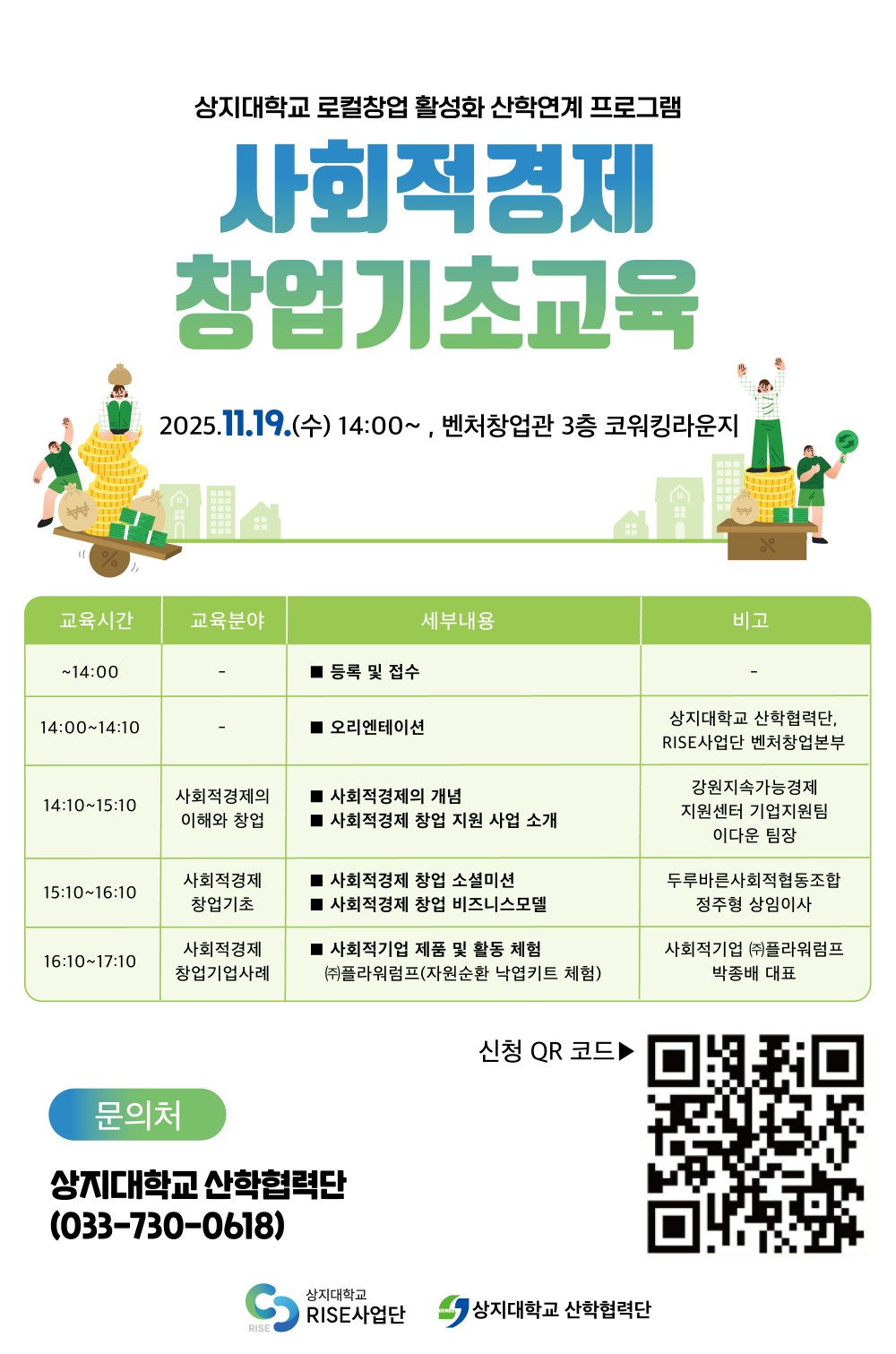 [횡성군] [대표] 상지대학교 로컬 창업 활성화 산학연계 프로그램 「사회적경제 창업 기초교육」 참여자모집…