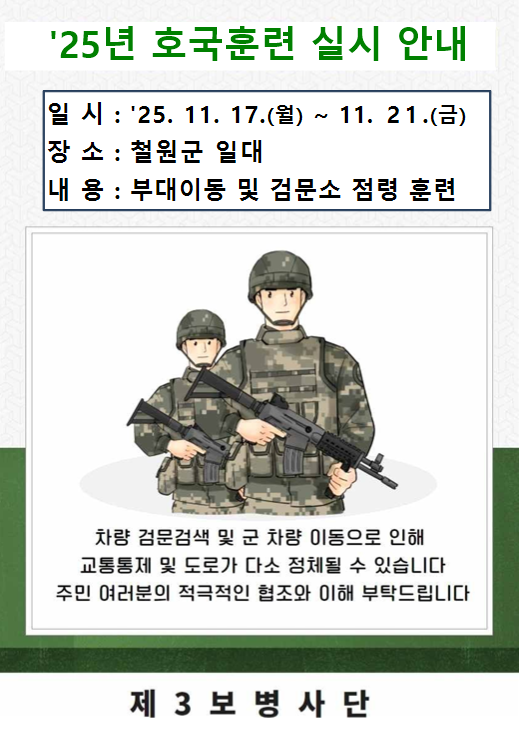 [철원군] 2025년 호국훈련 실시 관련 안내