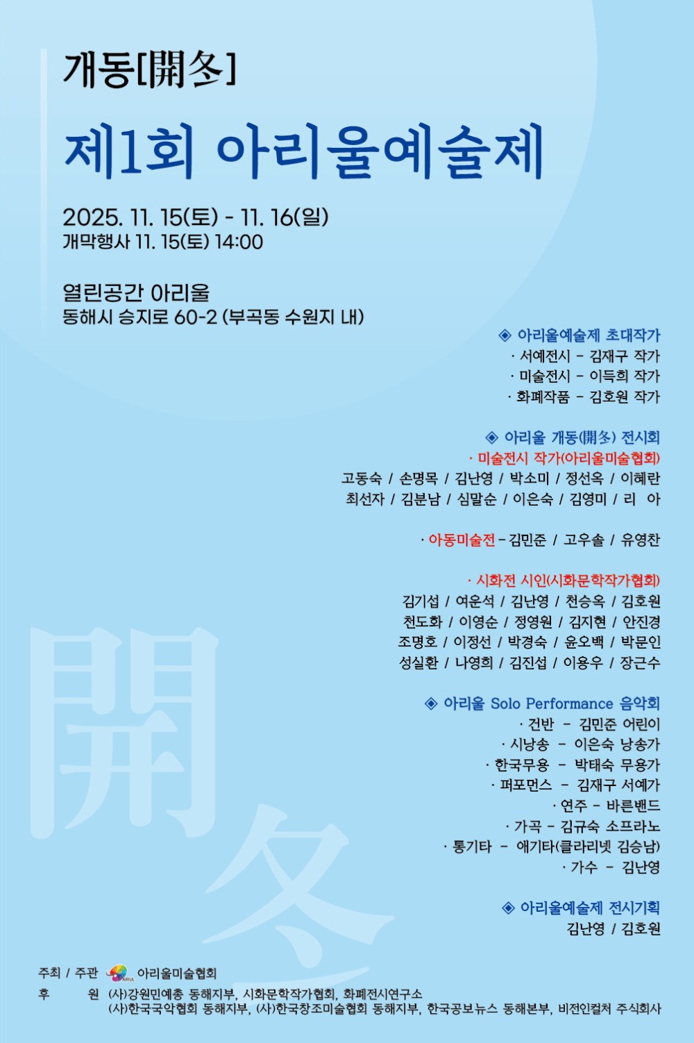 - 장 소 : 열린문화공간 아리울(동해시 승지로 60-2 동해시농업기술센터 옆)
