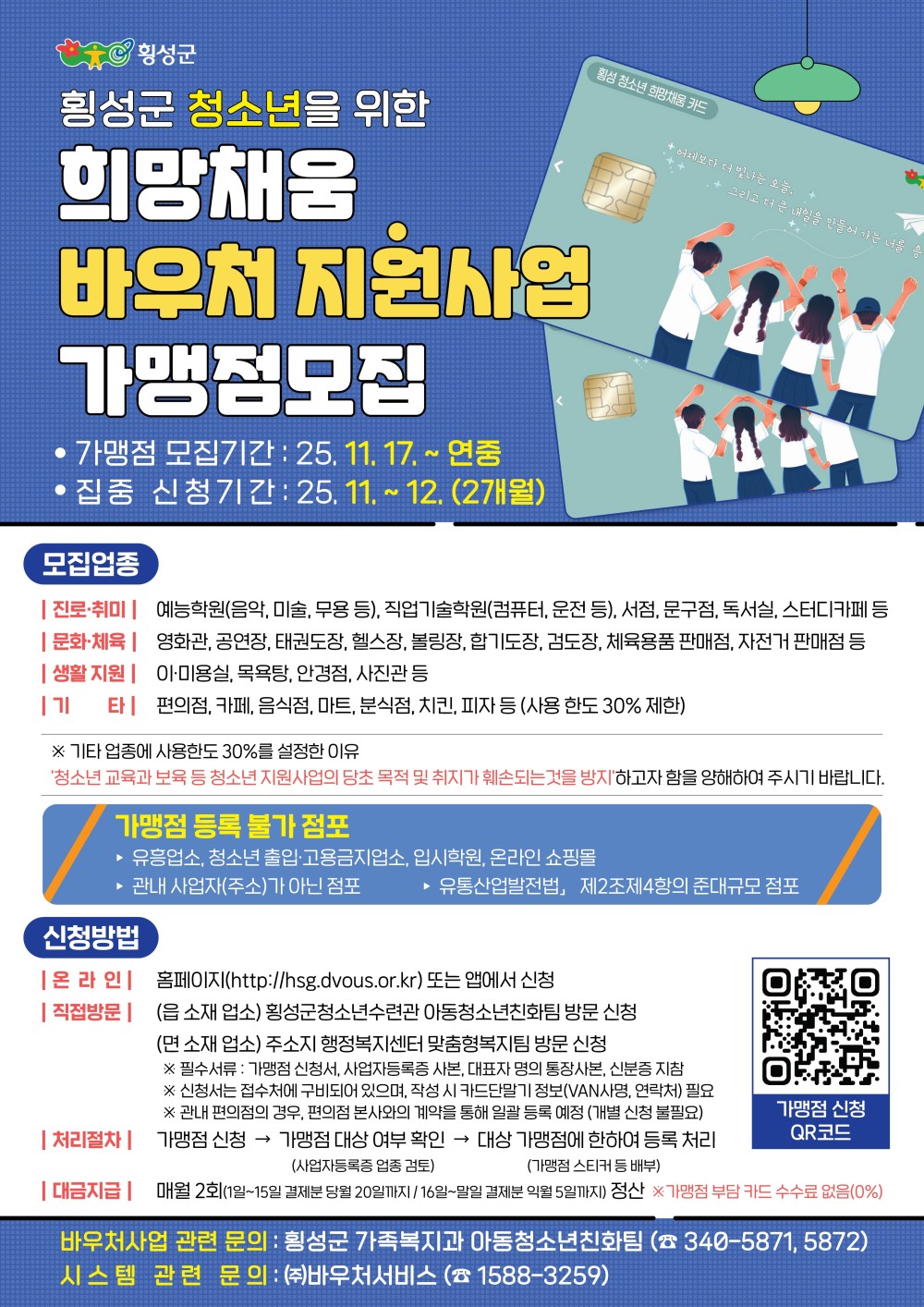[횡성군] [대표] 횡성군 청소년 희망채움 바우처 지원사업 및 가맹점 신청 안내
