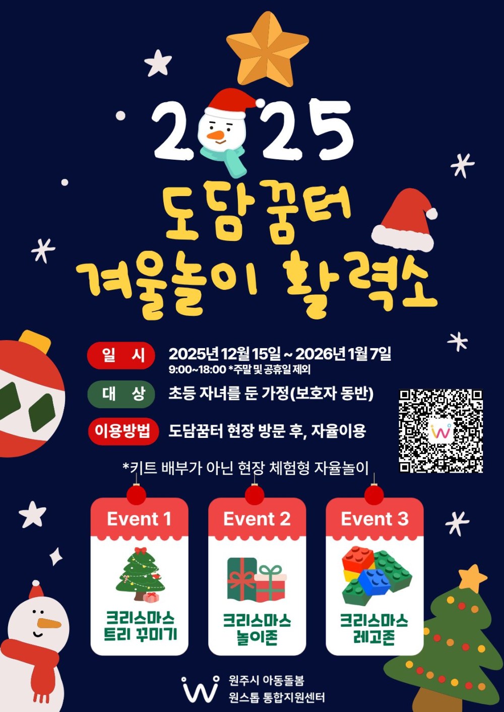 - 겨울놀이활력소 운영기간 동안 다양한 크리스마스 관련 놀이 이벤트 진행(키트 수령X)