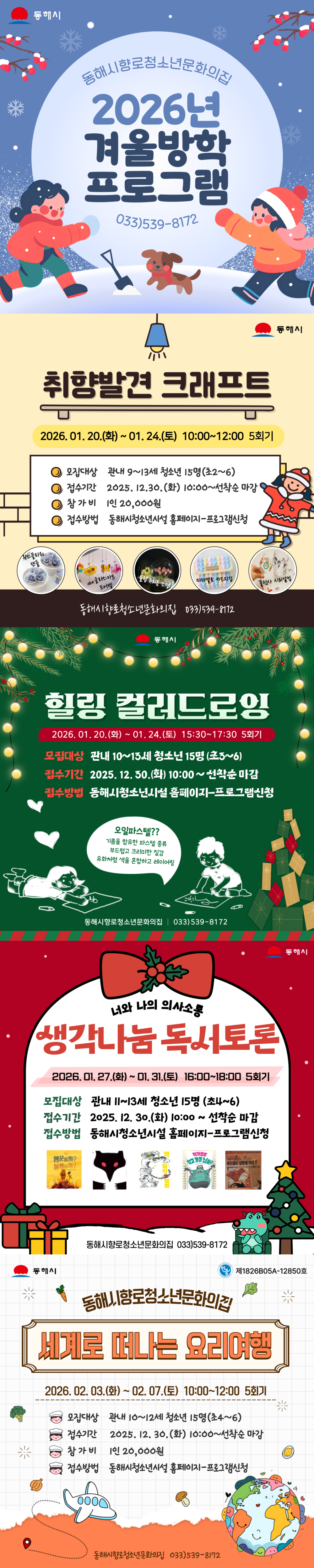 [동해시] 2026년 동해시향로청소년문화의집 겨울방학 프로그램 참가자 모집