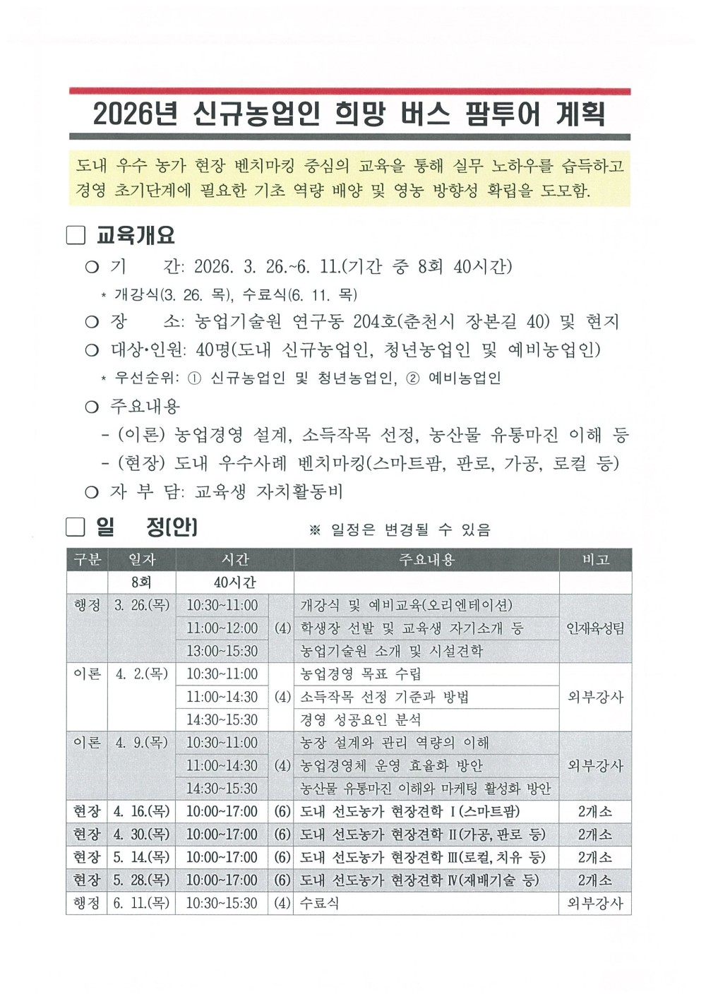 [원주시] 2026년 신규농업인 희망 버스 팜투어 신청자 모집
