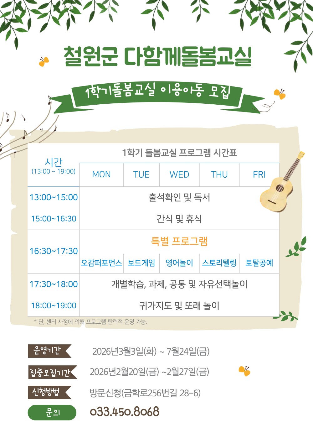 [철원군] 2026년 철원군 다함께돌봄센터(철원동송점) 학기중(1학기) 돌봄교실 이용아동 모집