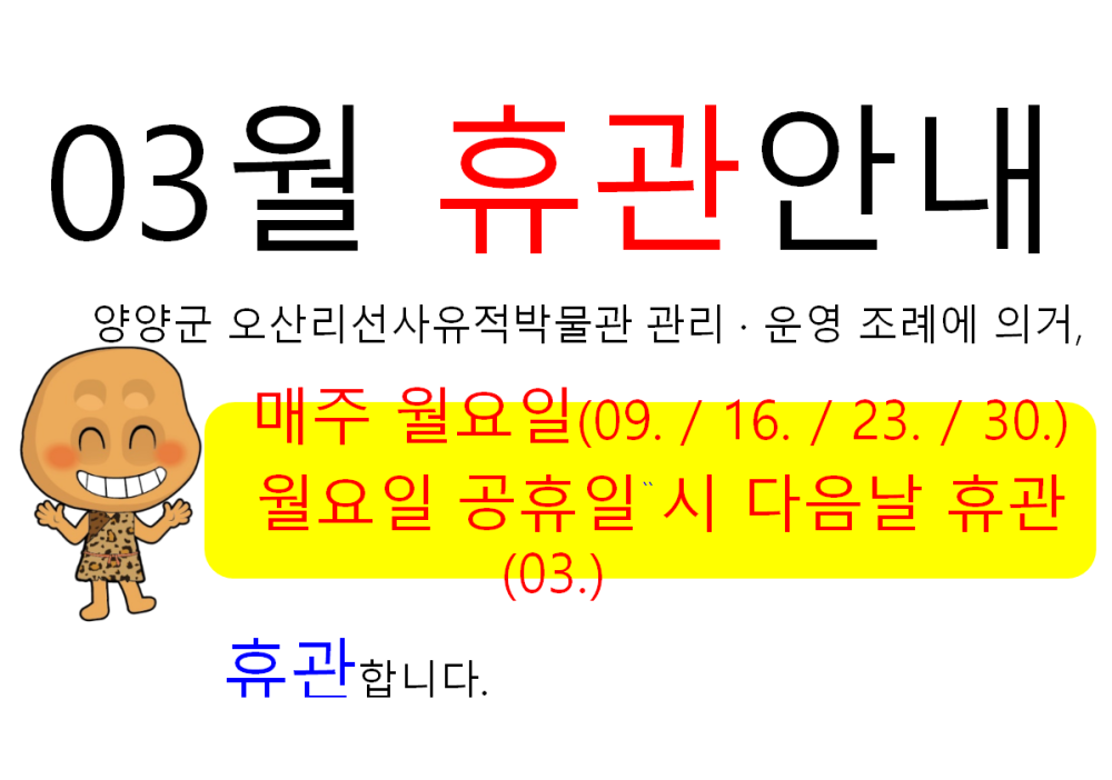 [양양군] 오산리선사유적박물관 03월 휴관일 안내