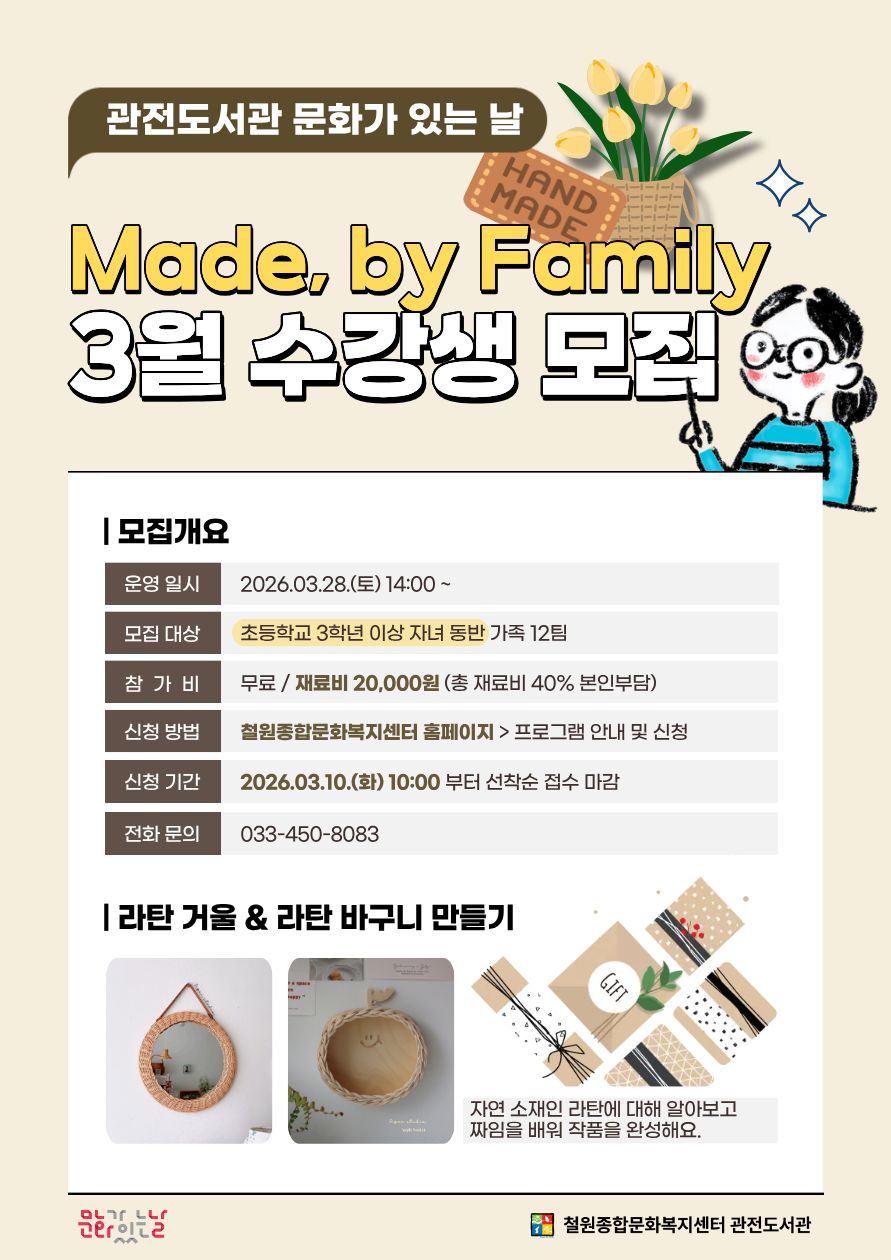 - 신청방법 : 2026. 03. 10(화) 10시~ 철원종합문화복지센터 홈페이지>프로그램 안내 및 신청